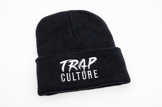 Trap Culture White Logo on Black Beanie with Fold